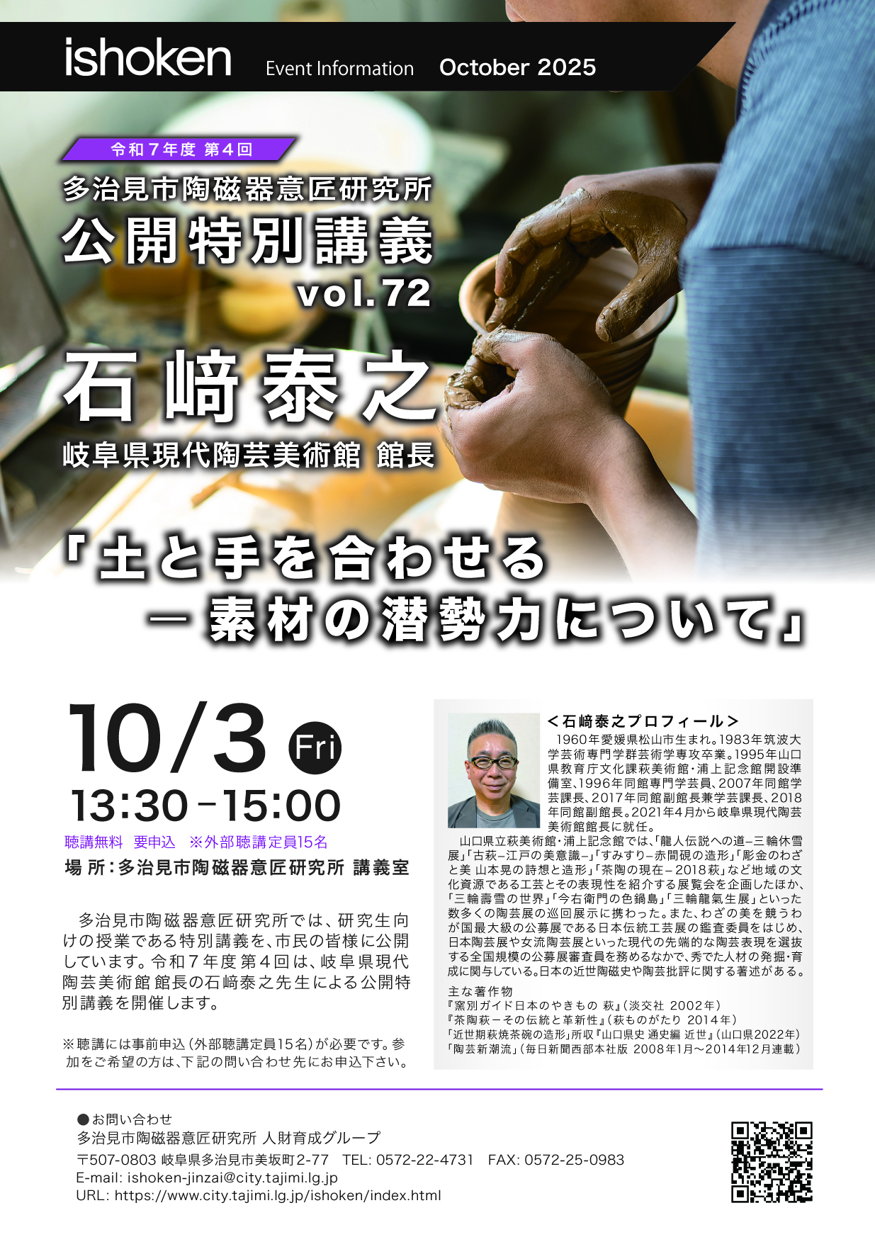 公開特別講義 vol.72 / 石﨑 泰之(岐阜県現代陶芸美術館 館長)