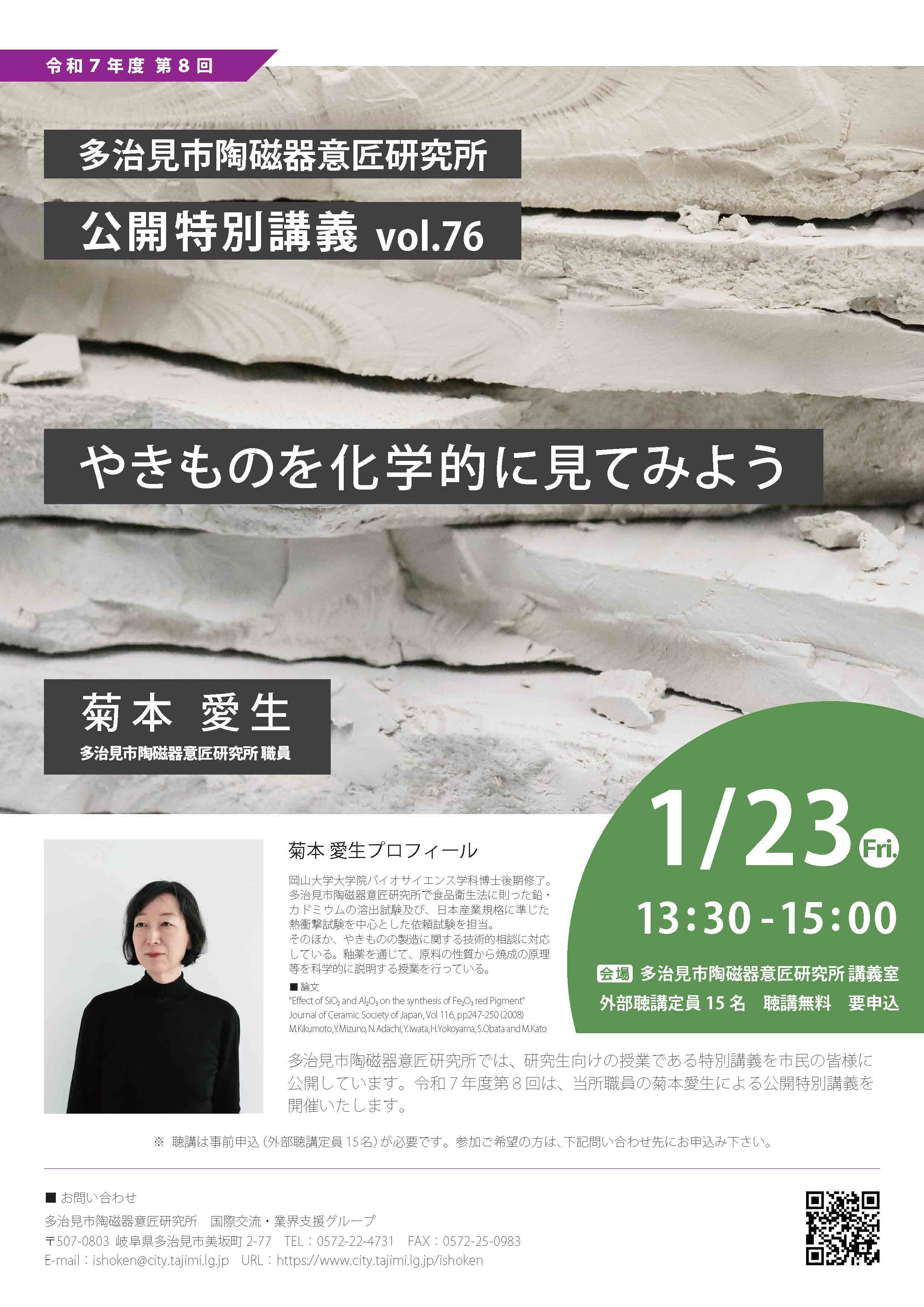 公開特別講義 vol.76 /菊本 愛生(多治見市陶磁器意匠研究所 職員)