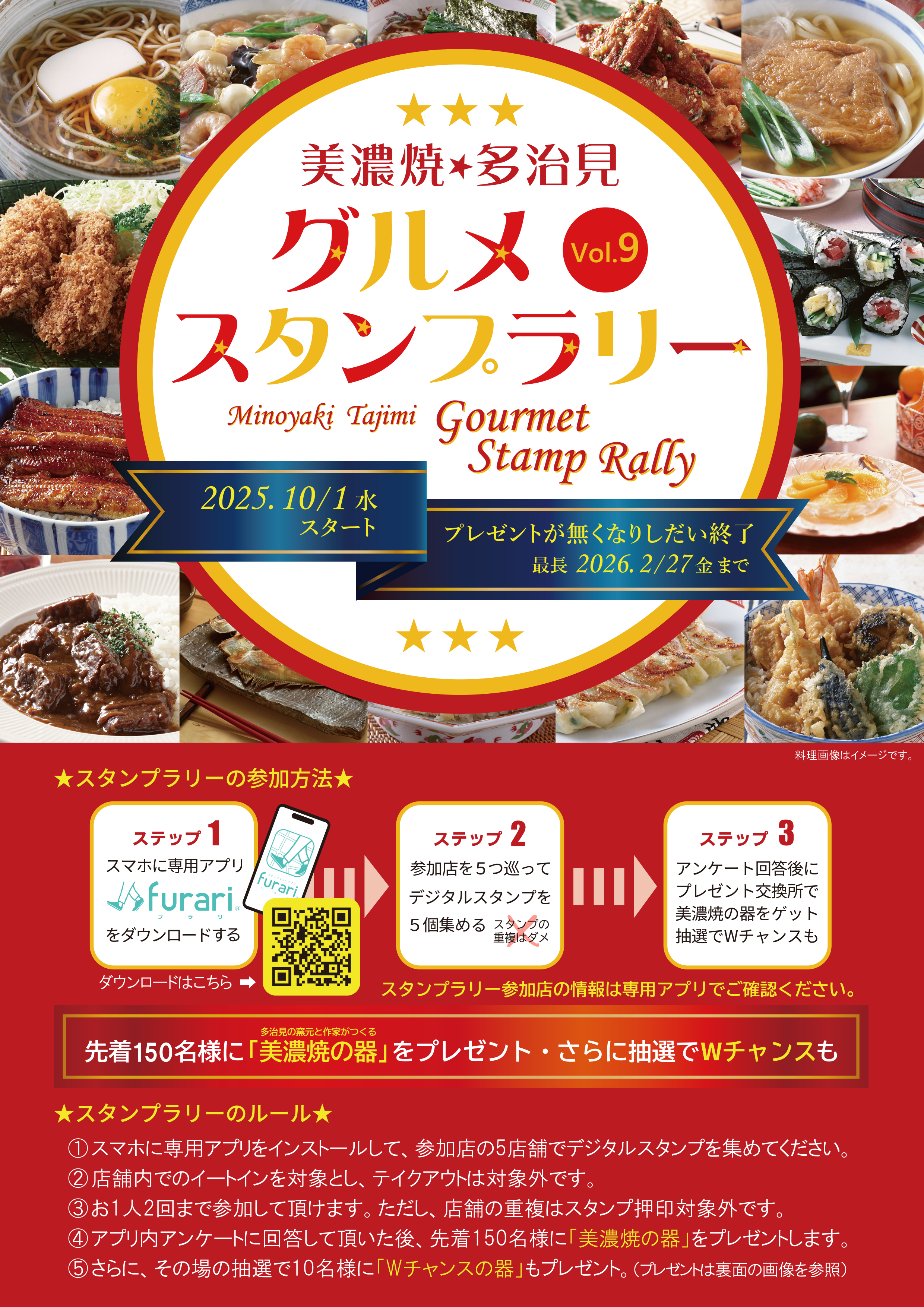 多治見市内のお店で美濃焼を愉しみながら飲食をしてスタンプを集めると、先着順で豪華景品をプレゼント!