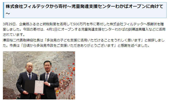 多治見市への寄附を通じて、多治見市の「まち・ひと・しごと創生寄附活用事業」を応援してくださった企業の皆さまのお名前を掲載しています。
