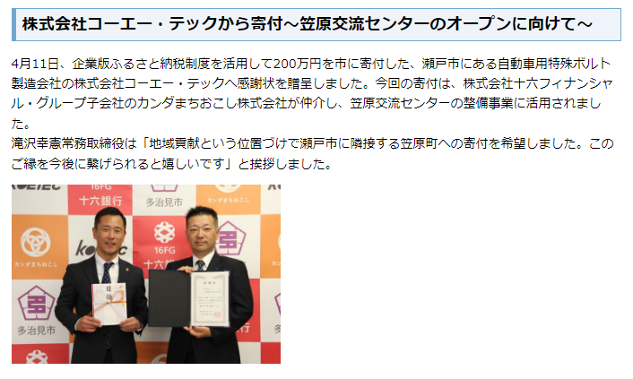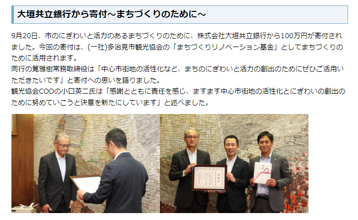 | 株式会社SMC総研 | 100,000 | 「共につくる。まるごと元気!多治見」 |