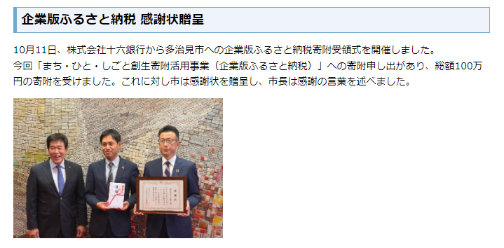 多治見市への寄附手続きに関するご案内は、こちらのページで行っております。